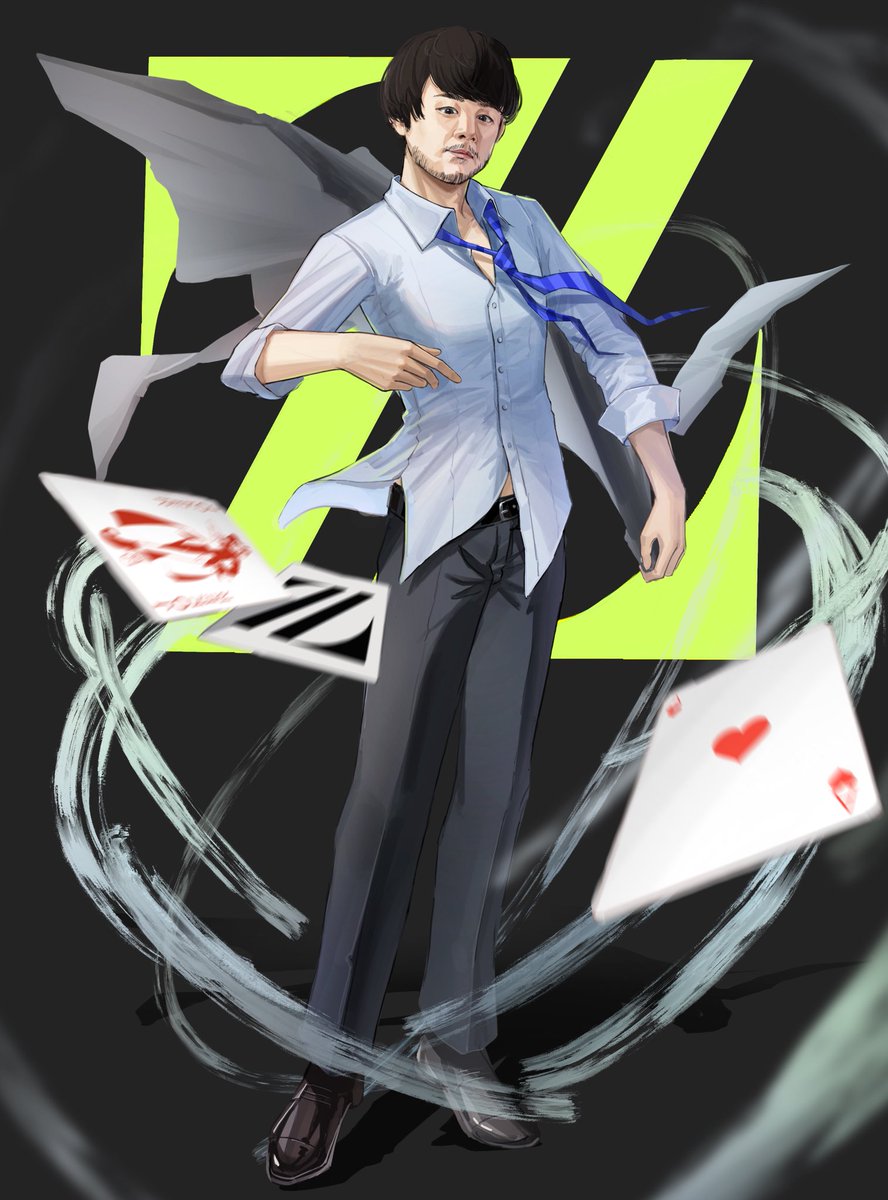 37 412 ロゴ入れた差分も作ったので置いておきます Aは配信者業界のエースとしての意味を、ジョーカーは笑いを届ける道化師を意味しています 二浪は藝大浪人してました #k4senイラコン 23/02/02 00:28