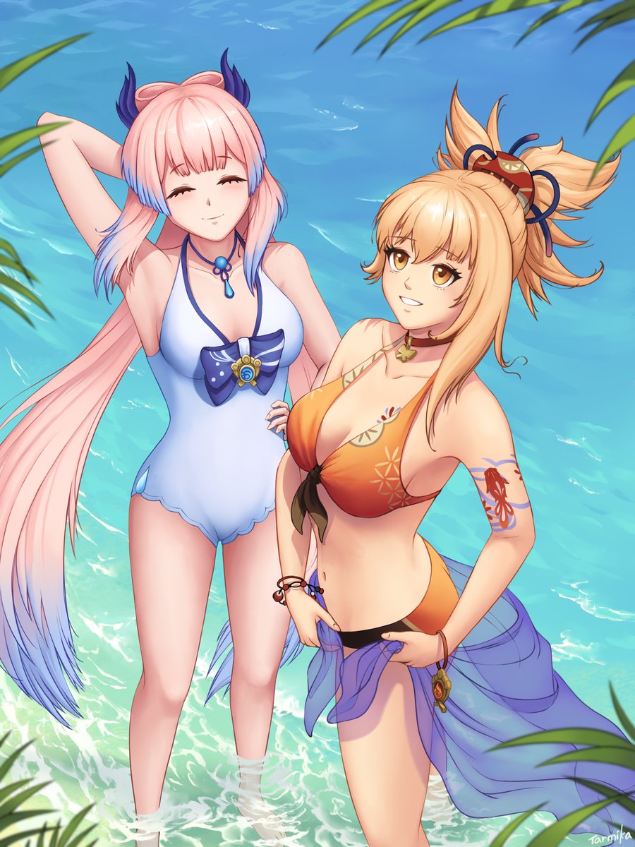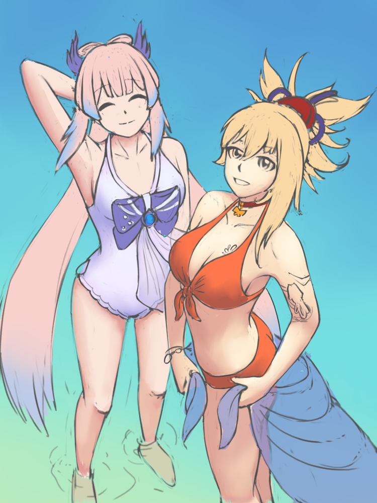 My summer fanart for Yoimiya and Kokomi ☀️🐟⛱️ And some work-in-progress pics. A timelapse is coming soon^^ #Yoimiya #GenshinImpact #Kokomi #Yoimiyafanart #genshinimpactfanart