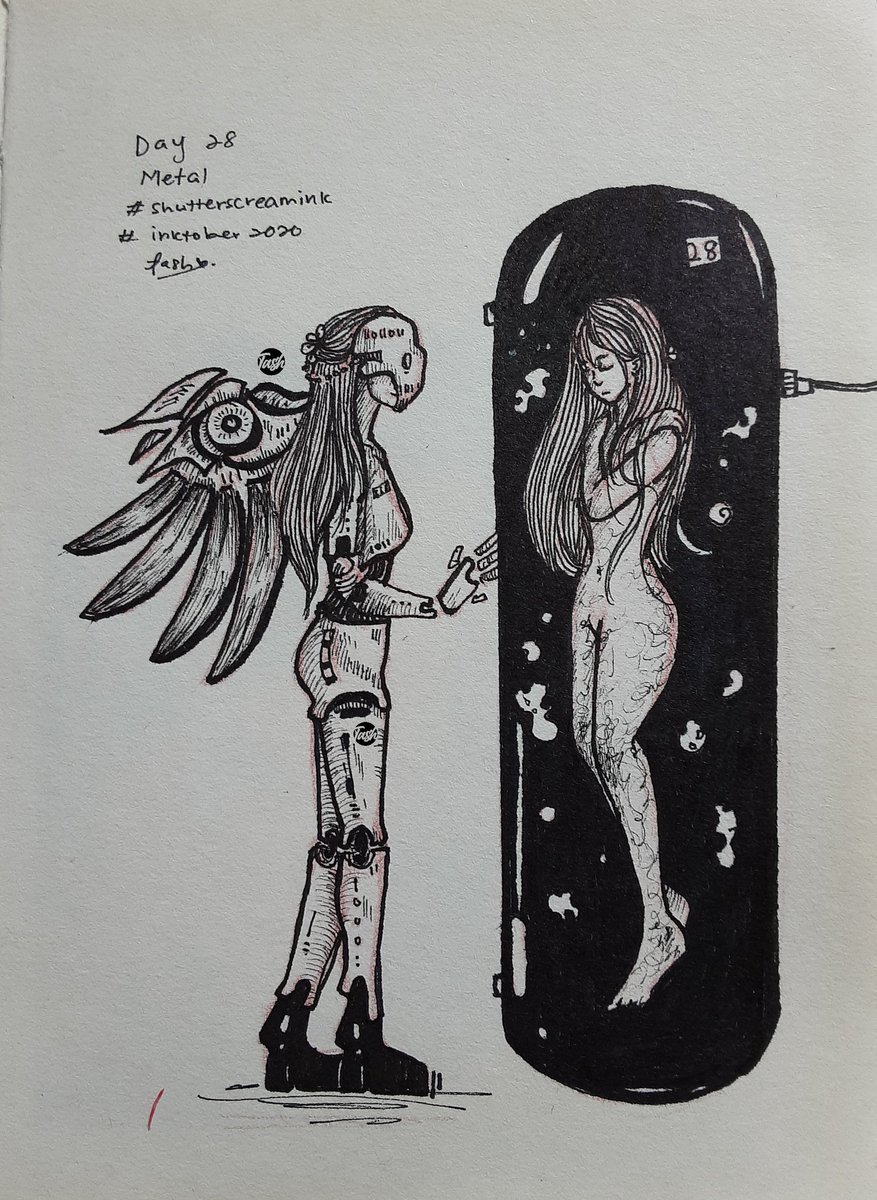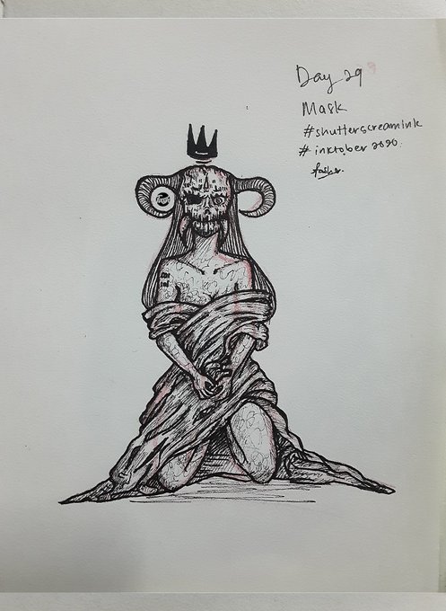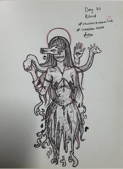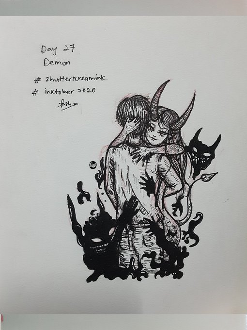 Day 31 Free To Draw Demon lady is back to it's cage. Puffing some cigarettes smoke, feeling so satisfied. Will she be back tho?😈 YAY HABIS YAHUUOOO #inktober #inktober2020 #shutterscreamink
