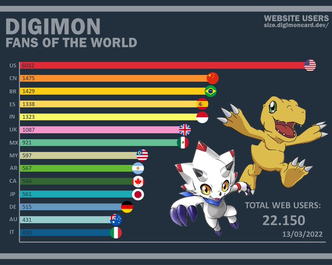 DIGIMON FANS OF THE WORLD Data based on number of users from size.digimoncard.dev What about you? Where are you from? 🌏🌎🌍 #Digimon