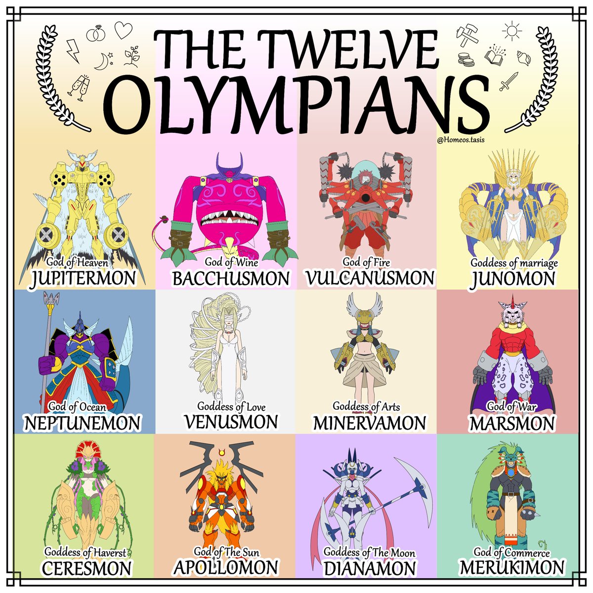 To which God/Goddess do you dedicate your prayers? 🙏🙏 OLYMPOS XII 🍷☀️🌙⚡️🔥⚔️💰📔🌿🌊❤️💍 #Digimon #デジモン #digimonadventure #digimonsize #digimonghostgame #art #lineart #digimonart #디지몬 #art #anime #otaku #japan #GreekMythology #Gods #OLYMPUS #Greece #Greekpantheon