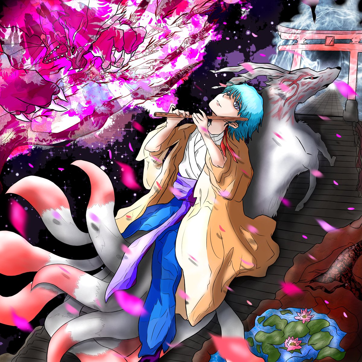 創作イラスト「高天原へ九尾と供に」 12月25日で描き始めて半年記念。 節目に龍を描きたくなる… 全反応巡ります(。_。*) #創作 #イラスト #drawing #Twitter交流会会場 #落書きギルド #創作の狼煙 #落書向上委員会 #みんなで楽しむTwitter展覧会 #アトリエの系譜 #絵描きさんと繫がりたい