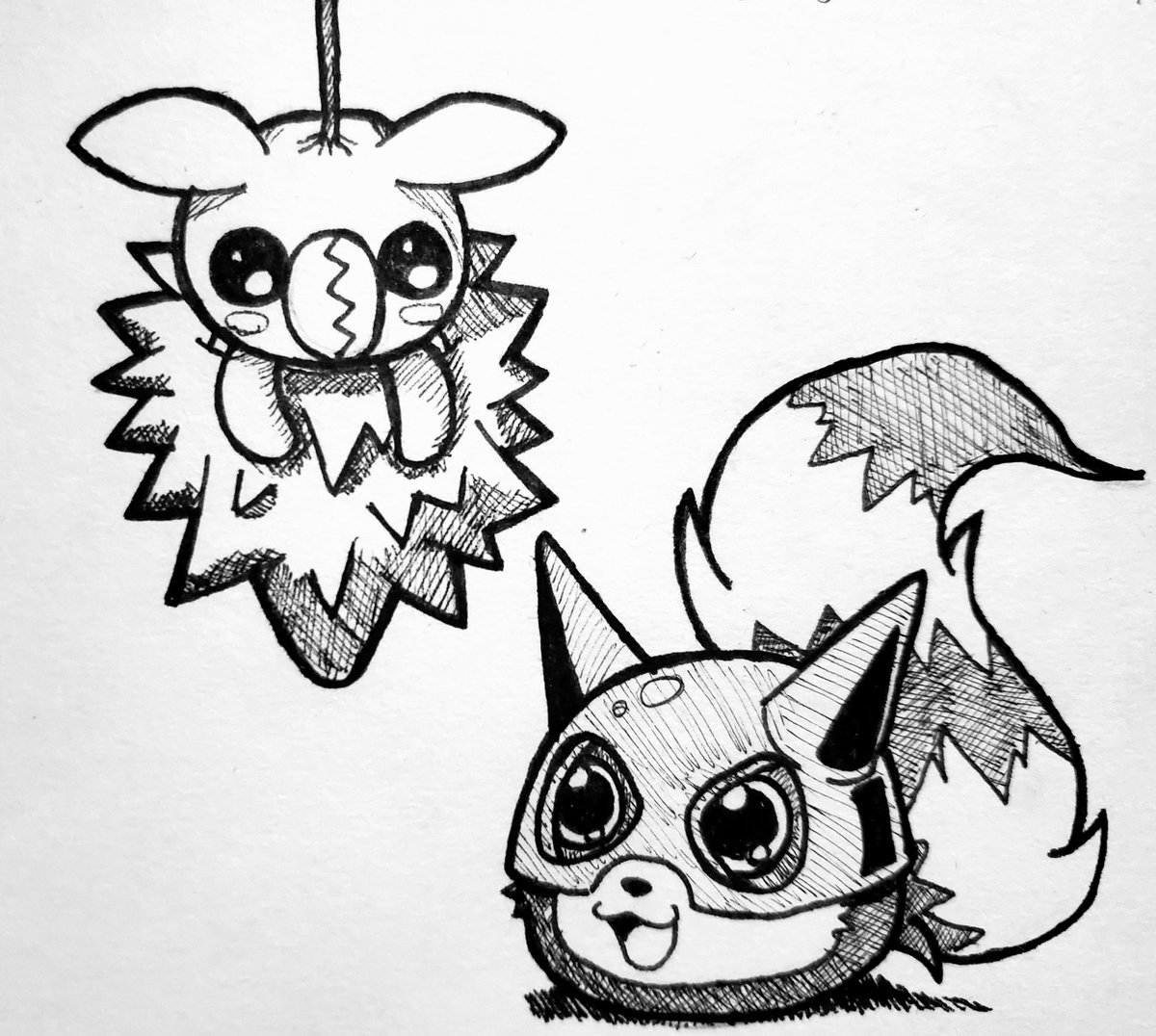 Day 4 of #drawtober : draw 2 in-training digimon... Minomon and Kapurimon just hanging out! Last day of the "warm up" stages #digimon #digitalmonsters #drawtober2019 #inktober2019 #artoftwitter
