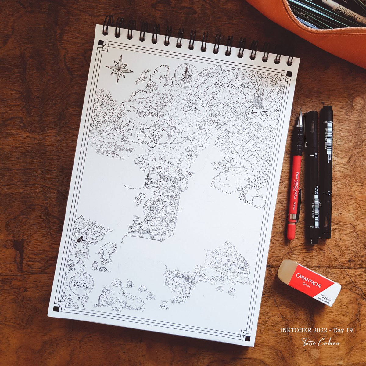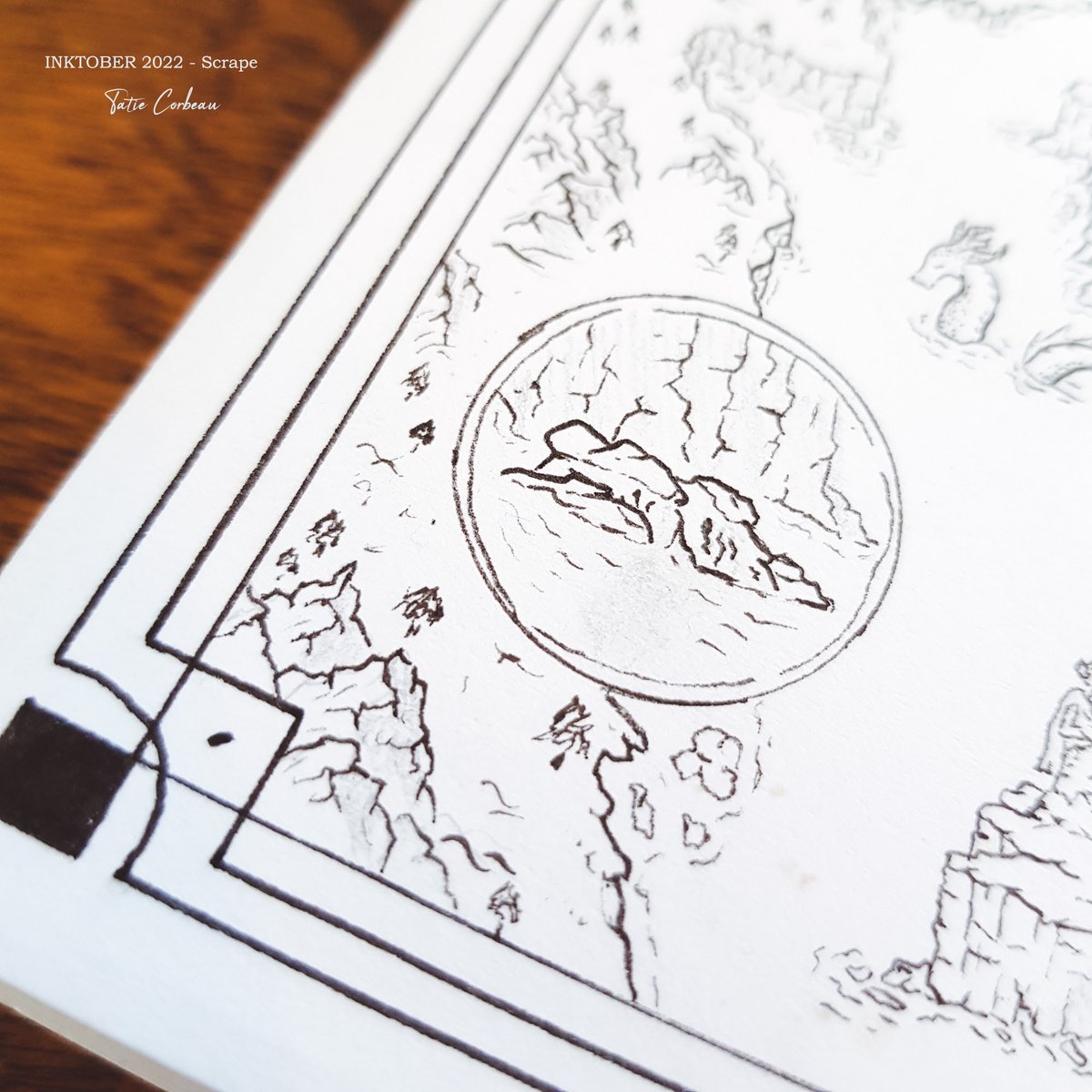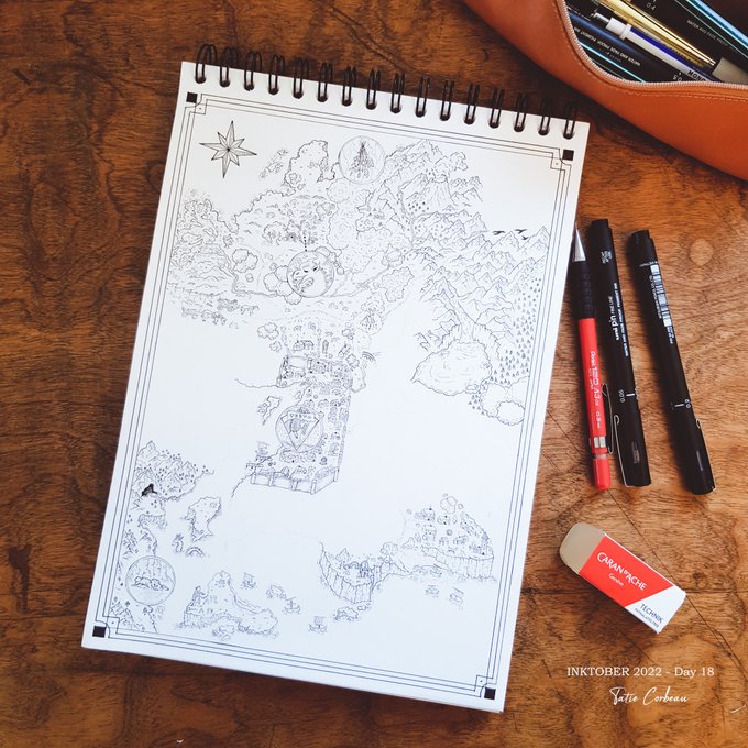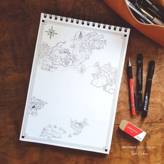 #inktober2022 Day 13 : Kind "Si vous entendez un grognement en vous promenant dans la région, ne vous inquiétez pas, c'est certainement Azor, la mascotte du coin qui vit dans la baie d'Onis ! Une mascotte imposante certes, mais il n'y a pas plus gentil que lui !" #map #maptober