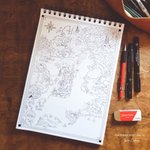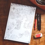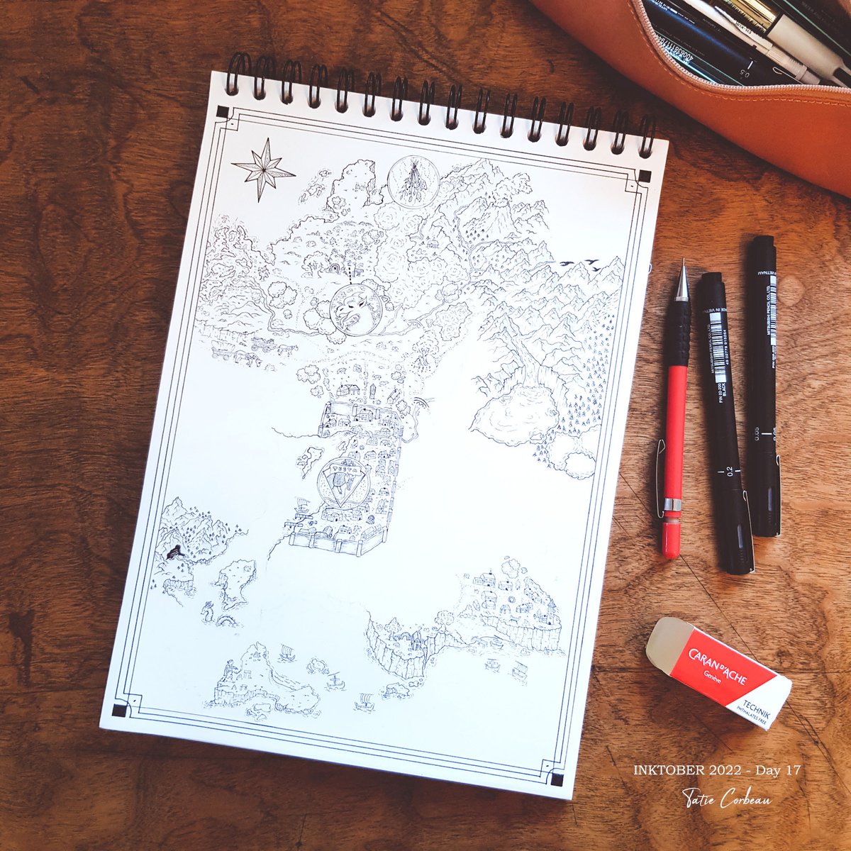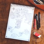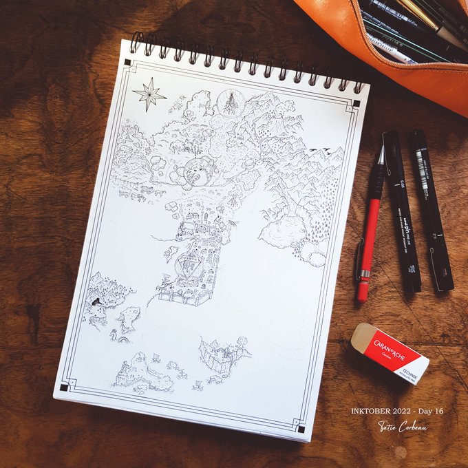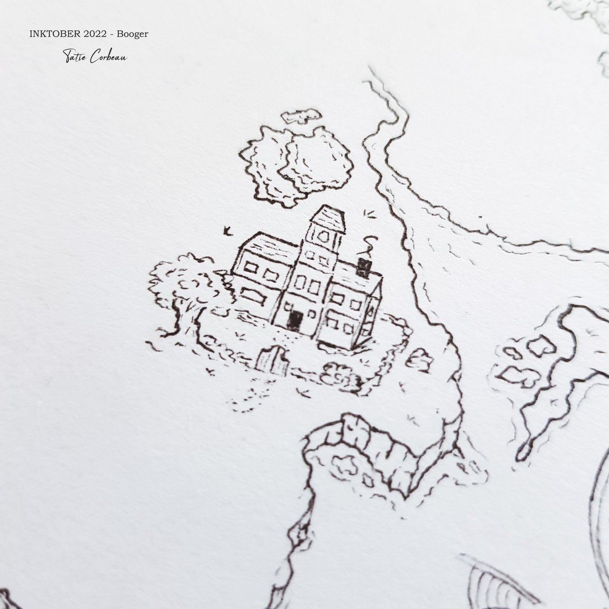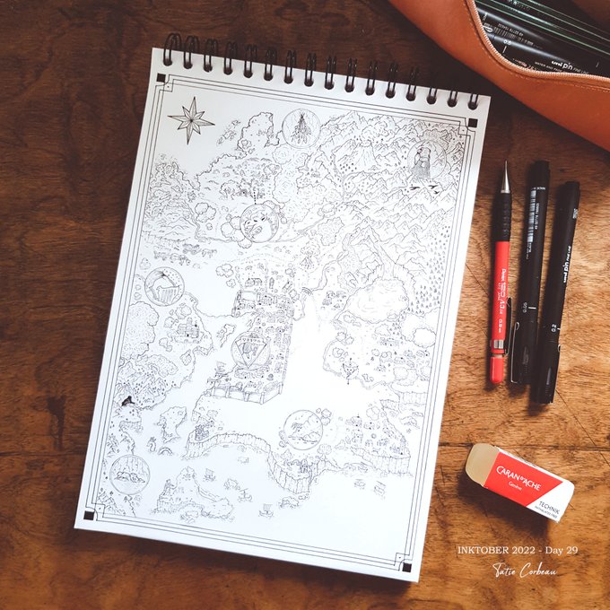 #inktober2022 Day 8 : Match "Marchands, visiteurs et chevaliers se rencontrent à la croisée des chemins. L'occasion de partager leurs histoires et de déposer une bougie au pied de l'arbre en l'honneur du dieu Adenos, protecteurs des voyageurs." #map #dndart #inktober2022day8
