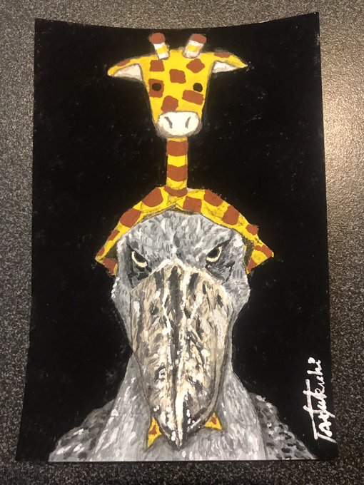 🦒 #キリンいっぱい展4 🦒 ハシビロコウ好きとウサギ好きにも。 #illustration #drawing #art #アクリル画 #絵描きさんと繋がりたい #イラスト #みんなで楽しむTwitter展覧会 #イラスト好きな人と繋がりたい #冬の創作クラスタフォロー祭り #シャンフロ #シャングリラフロンティア