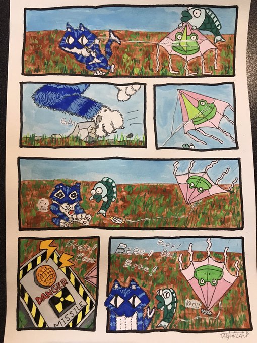 ネコクジラの冒険 第2話『凧あげ』 お正月に間に合った。 #illustration #drawing #art #アクリル画 #絵描きさんと繋がりたい #イラスト #みんなで楽しむTwitter展覧会 #イラスト好きな人と繋がりたい #冬の創作クラスタフォロー祭り #漫画が読めるハッシュタグ #新年早々の創作クラスタフォロー祭り