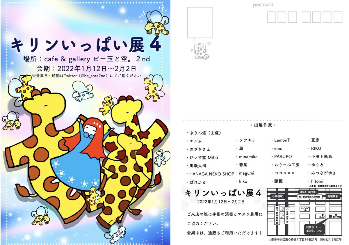 とうとう #キリンいっぱい展4 が始まります。原画やポストカードを展示販売します。他にも沢山素敵クリエイター様達が参加するので是非お立ち寄り下さい。通販もやってます。 開店時間の確認、通販はDMをココへ!→ @be_sora2nd #イラスト好きな人と繋がりたい #イラスト #絵描きさんと繋がりたい