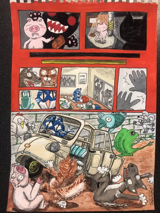 ネコクジラの冒険 第9話 『Zombie Panic』1/3 旧車を描くのが楽しい! #絵描きさんと繋がりたい #イラスト #みんなで楽しむTwitter展覧会 #漫画が読めるハッシュタグ #フォロワー1000以下の一次創作作家発掘フェス #ミゼット #車好きと繋がりたい #冬の創作クラスタフォロー祭り #旧車 #動物イラスト