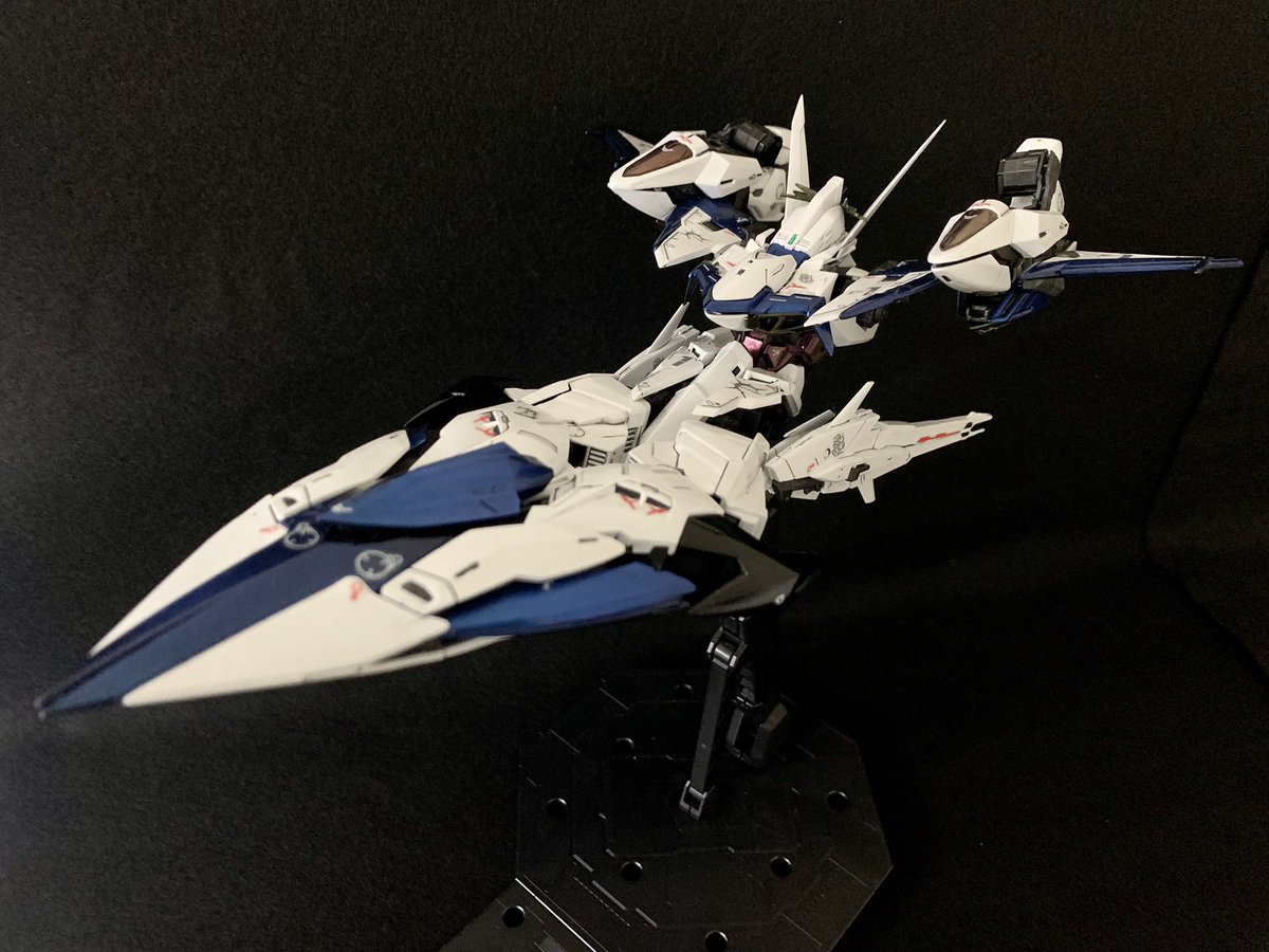MG1/100エクリプスガンダム全塗装•完成 MA形態 エクリプスに課せられた超高速飛行を実現するためのフォルム。これによって最高速度は、音速を超える。そうです👀 差し替えなしの完全変形でスタイルもかっこいいですね☺️ #エクリプスガンダム #ガンプラ #ガンプラ好きと繋がりたい