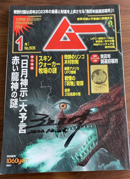 23 184 先日月刊ムー様の三上編集長と対談させていただきました!三上さんの知識量がすごくてもっと沢山話を聞きたかったです!サインもいただきました!ありがとうございます! 23/03/03 09:26