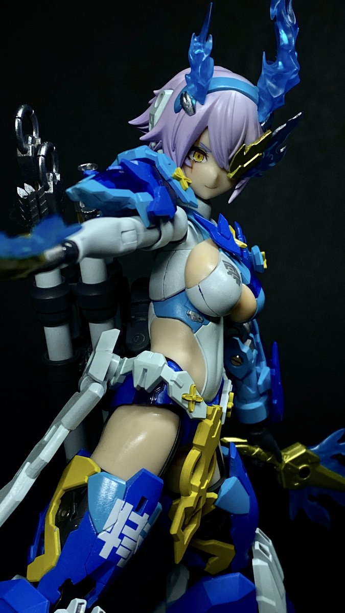 皇巫 ハリティ 完成しました 朱羅弓兵の後継機イメージです 蒼炎を蒼衣カラーで塗装しました #メガミデバイス