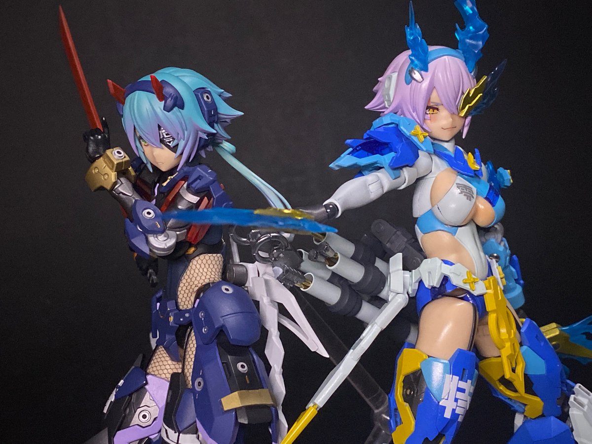110 320 皇巫 ハリティ 完成しました 朱羅弓兵の後継機イメージです 蒼炎を蒼衣カラーで塗装しました #メガミデバイス 23/03/18 17:02