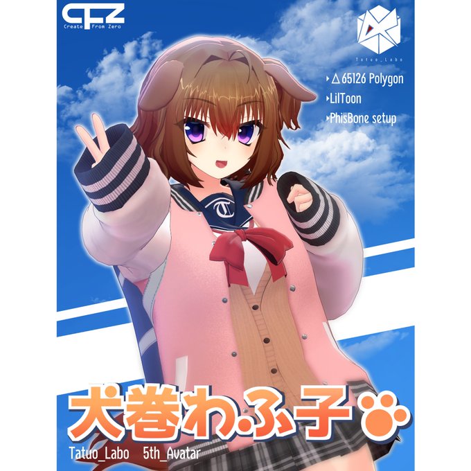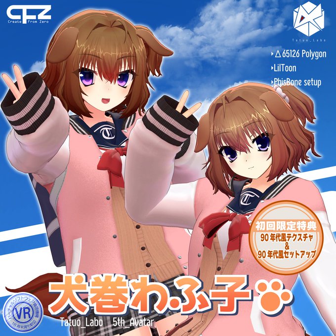 【4/16まで1000円OFF!!】オリジナル3Dモデル「犬巻わふ子」初回限定版Ver1.0.0 | たつお研究所 tatuolabo.booth.pm/items/4657427 販売開始しました!!今回は初回限定版として今日から一週間(~4/16)まで1000円OFFの4000円で90's風テクスチャつきで販売します! モデルのミスや質問等はDMに連絡お願いします!
