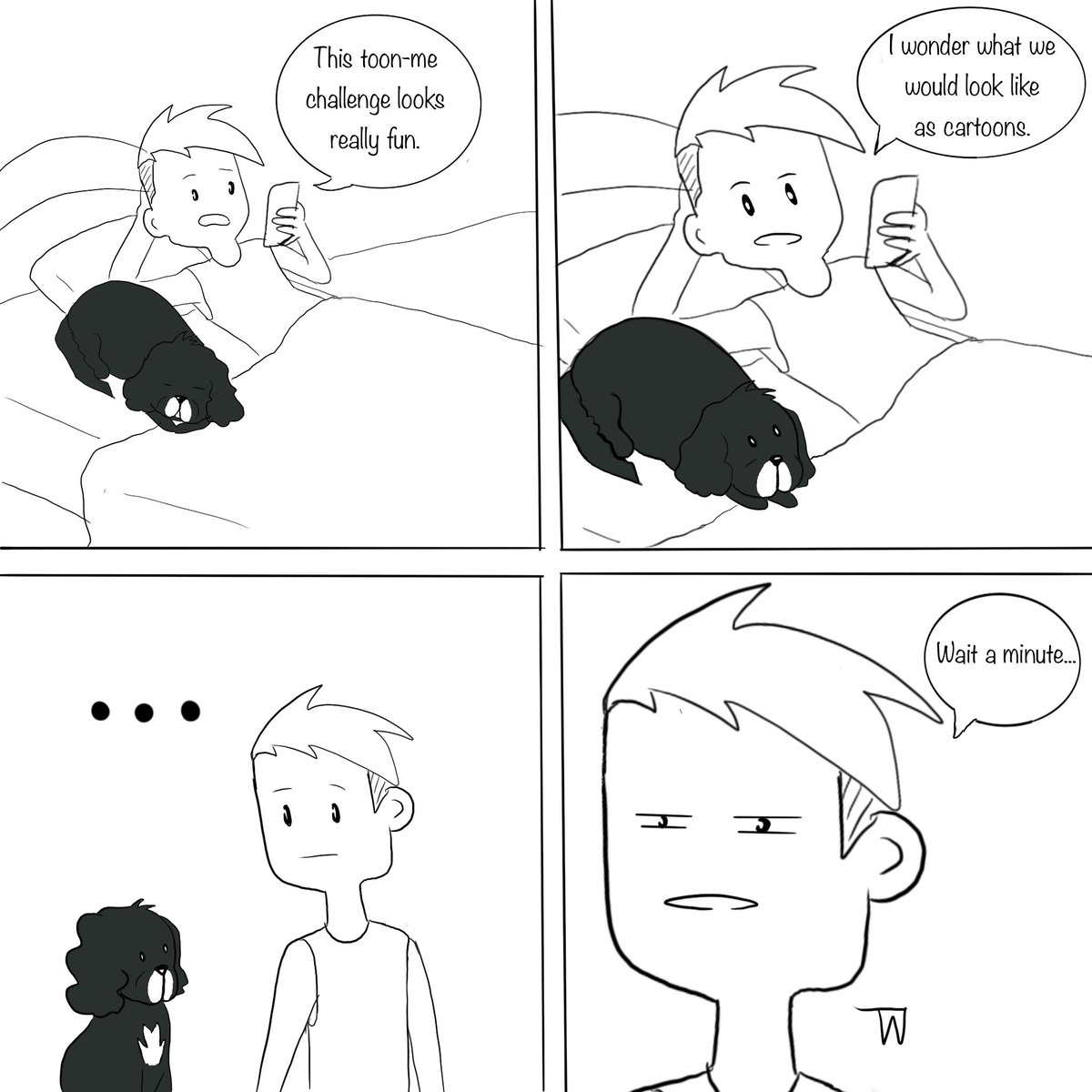 Artist and Dog 18: Am I breaking the fourth wall? #art #toonme #toonmechallenge #comic #shortcomic #minicomic #dog #webtoon #webtooncomic #artistoninstagram #artsagram #myart #artistanddog #tapas #tapastic #tapascomics #funny #comicsoninstagram