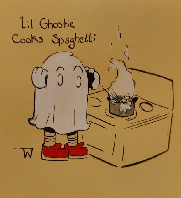 Lil Ghostie cooks spaghetti #art #doodle #ghost #lilghost #inktober #artchallenge #artistsontwitter #myart