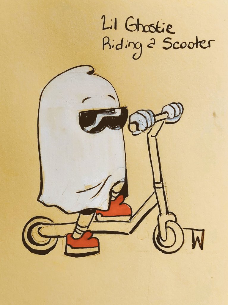 Lil Ghostie rides a Scooter #art #ghost #doodle #artchallenge #inktober #lilghost #artistsontwitter #myart