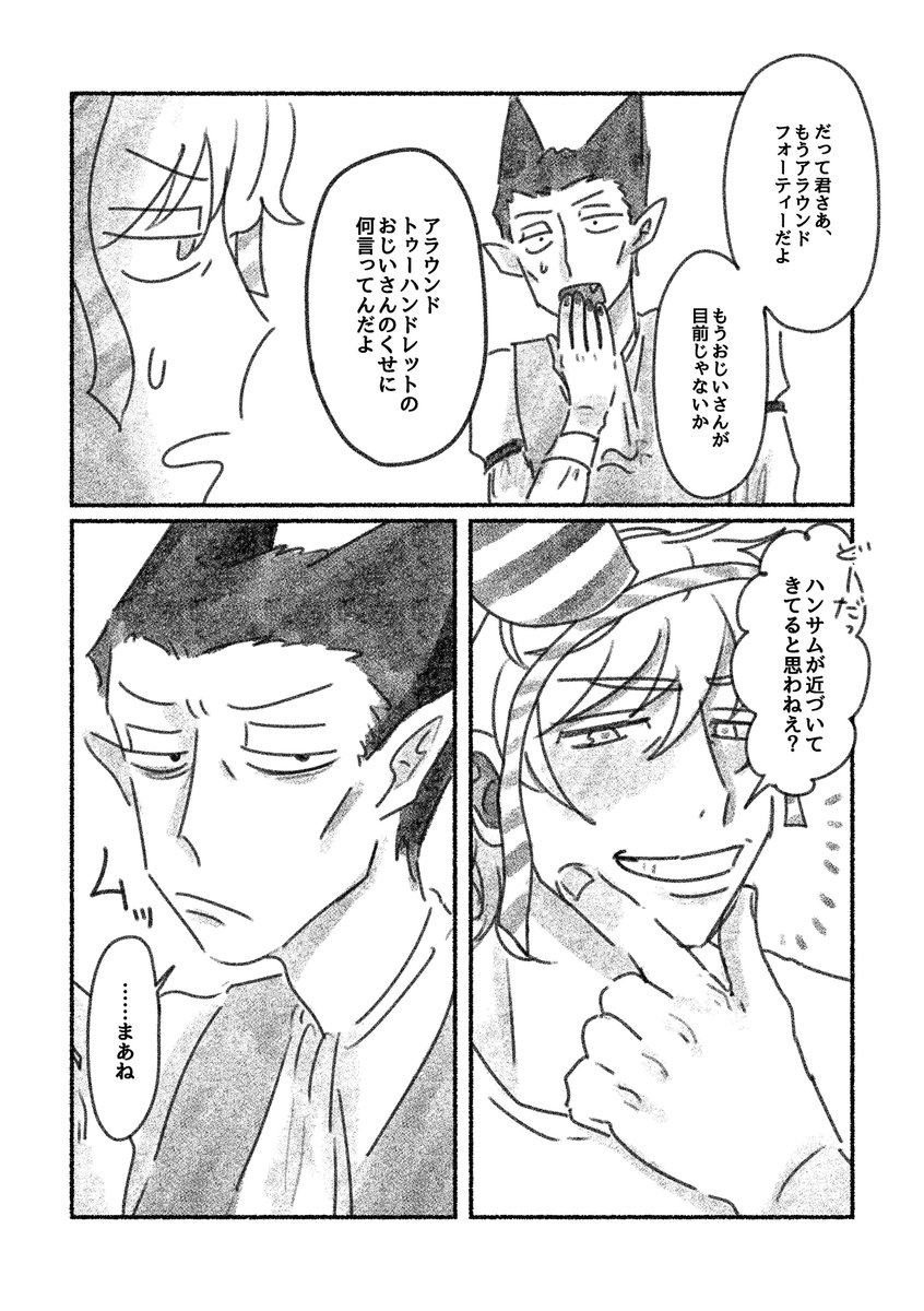 30 221 0504 新刊サンプル 『オールドボーイ ヤングメン』 ドとロ 非固定 全年齢 フルカラー 28p 600円 「ちがう」ふたりが愛し合いながら一緒に生きている様子を愛でる本です。 ふざけた表紙(裏表紙)に部分カラーの漫画、ふざけたカラーイラスト等、色々やりたい放題やってます。 よろしくお願いします。 23/04/17 23:22