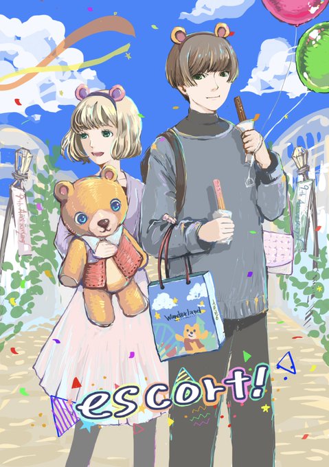 104 950 ワートリ:那須さんと奈良坂くん。いとこ同士親戚の旅行先でのエスコート姿が見たすぎるので描きました。えらい!! 22/02/11 11:04