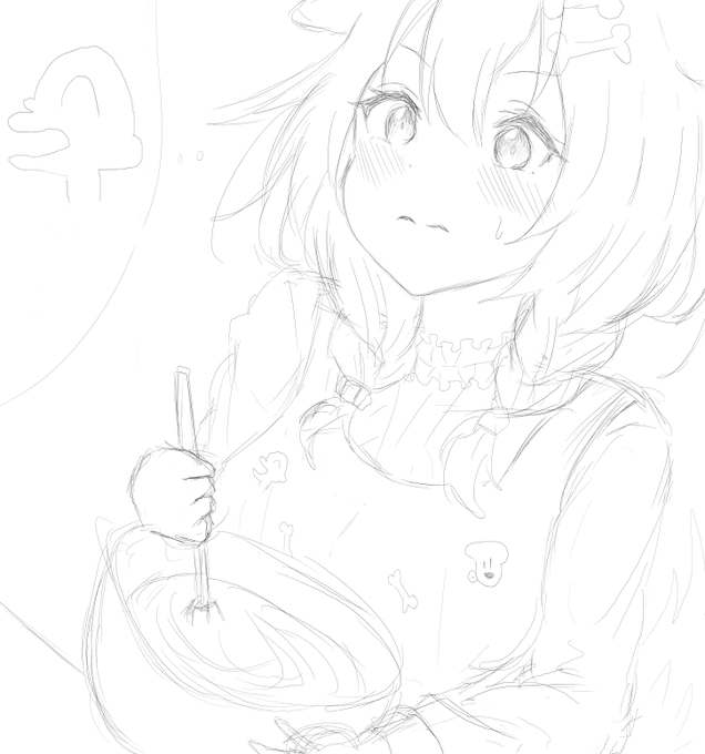 時間の都合上ここまでしか描けんかった…… ちょい雑になってしまいました…… チョコを作るころさんです! #できたてころね