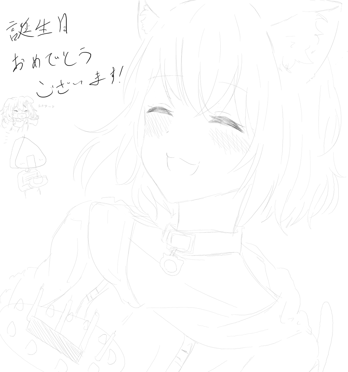 誕生日おめでとうございます! 時間が無く線画です。お許しください。 今日のライブ楽しみです! #猫又おかゆ生誕祭2022 #絵かゆ