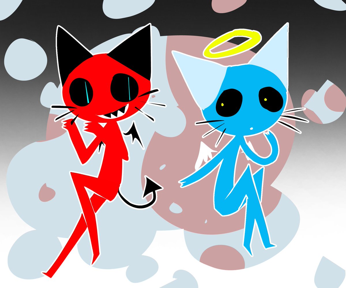 # ねこのティーチくん 初期テてんしとコあくま。。可愛くて描きました。