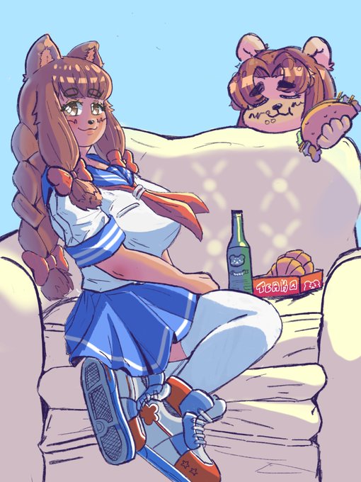 Lunch time 🔥 🐻 ✨ Happy belated birthday to @Luxuriass two bear girls just snackin on stuff 🐻 hope you like it fhsjsjsja sorry it’s almost a month late 👉👈 mwah mwah Hehe #furry #monstergirl #digitalart #digitalartwork #artistontwittter