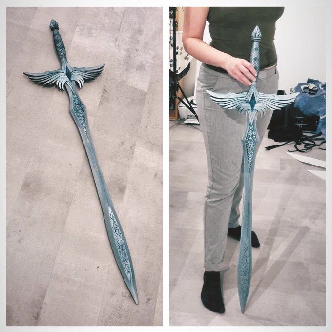 Holy Avenger sword is also finished, with me for scale haha 😁 The con is this weekend aaaahh I'm hyped Collabed with Miniprinten Model by Porzellan props ❤️ #yashanydoorin #CriticalRoleCosplay