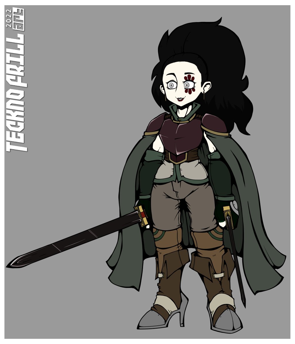 random back-up DnD character I thought up, with a stupid name referencing a game I've played like, twice. beep boop, she gon' cut ya #dndart #DnDcharacter #digitalart