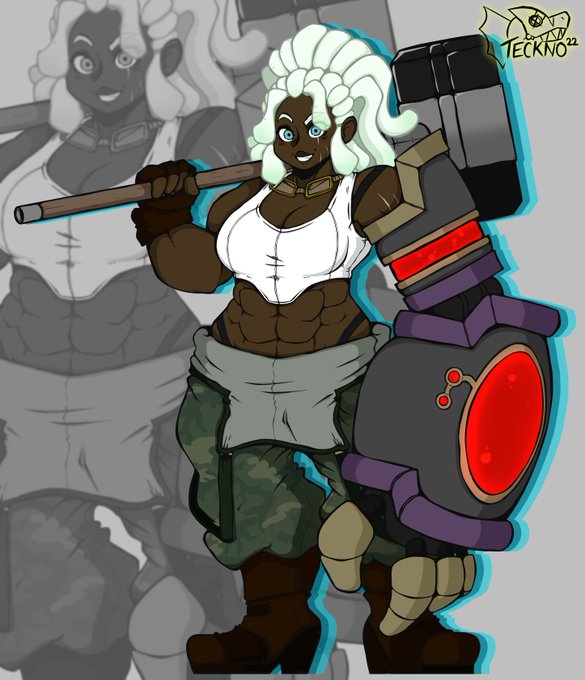 Decided to do something a bit *more* than I usually do, here's Baela Valencia, my barbarian in the DnD game I'm currently playing in. She big, she stronk and she may, or may not, be mildly possessed by a demon. #clipstudiopaint #digitalarts #DnDcharacter #dndart #barbarians