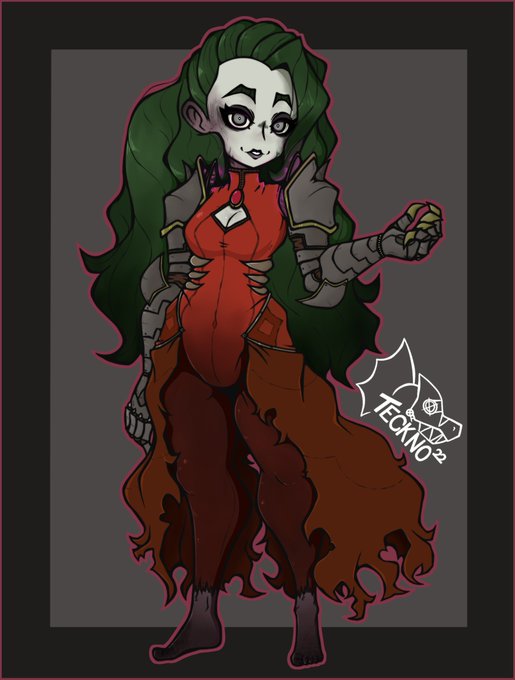 Still trying to work out what exactly I'm doing style and proportion-wise, so I did drew up my (aptly named) necromancer lady, Zofia Grimm, as more practice. #digitalart #DnDcharacter #dndart