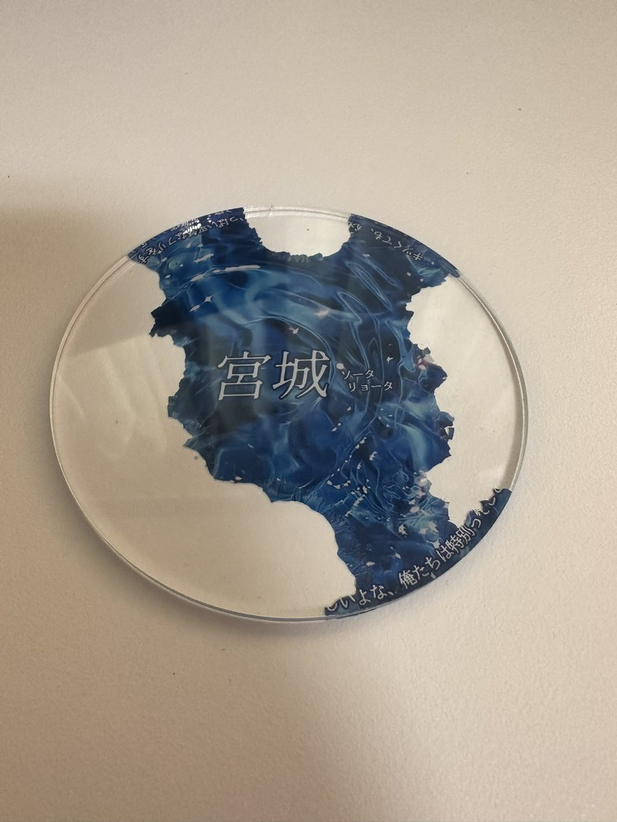 아니 준태생카 코스터 보관실수로 물에 젖어서 뒷면이 다 떨어졌는데 부서지는 파도처럼 남은 거랑 형제 이름이랑 우리는 특별한 형제 만 남은게 너무 미야기 형제 그자체라 눈물남