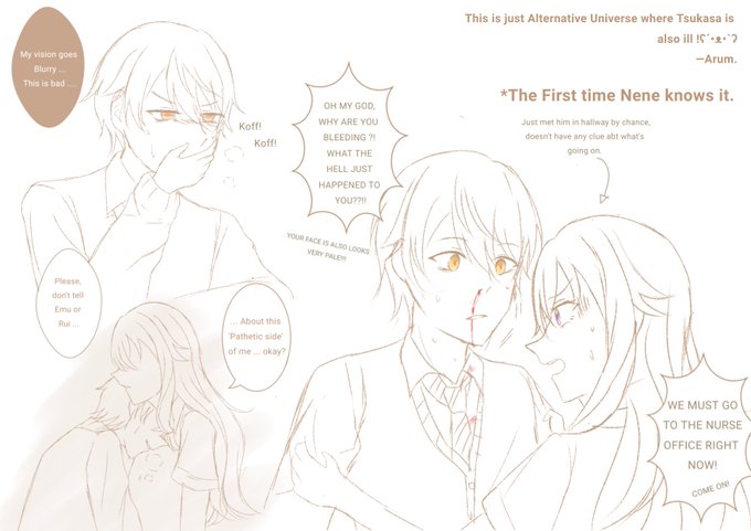 [Doodles || Headcanon] What if Tsukasa is also ill just like saki but he hides his pain the way more perfectly so no one in his unit knows it, until Nene figured out—by accident ofc. #prsk_FA #prsk_NL #司寧々 #nenekasa