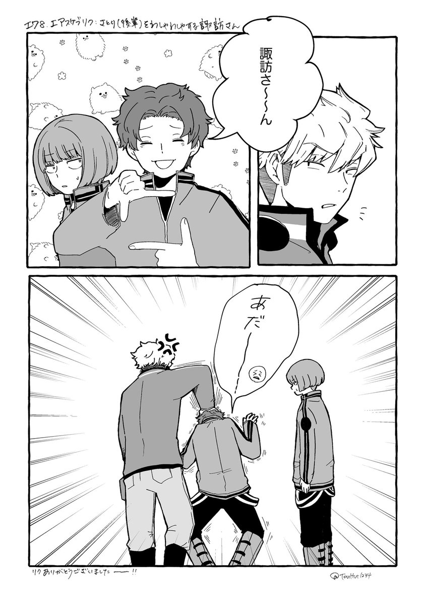 【エワ即売会お品書き】 ★新刊 嵐山隊(時枝・佐鳥)中心 / A5 / 全年齢 / 40p ★既刊 嵐山隊(時枝・佐鳥)中心 / A5 / 全年齢 / 28p ★エアスケブ(ゆる募) ----- 本はどちらも短編集です。 内容の半分くらいはTwitterに載せた漫画・絵になります #エワ即売会 #エワお品書き202110