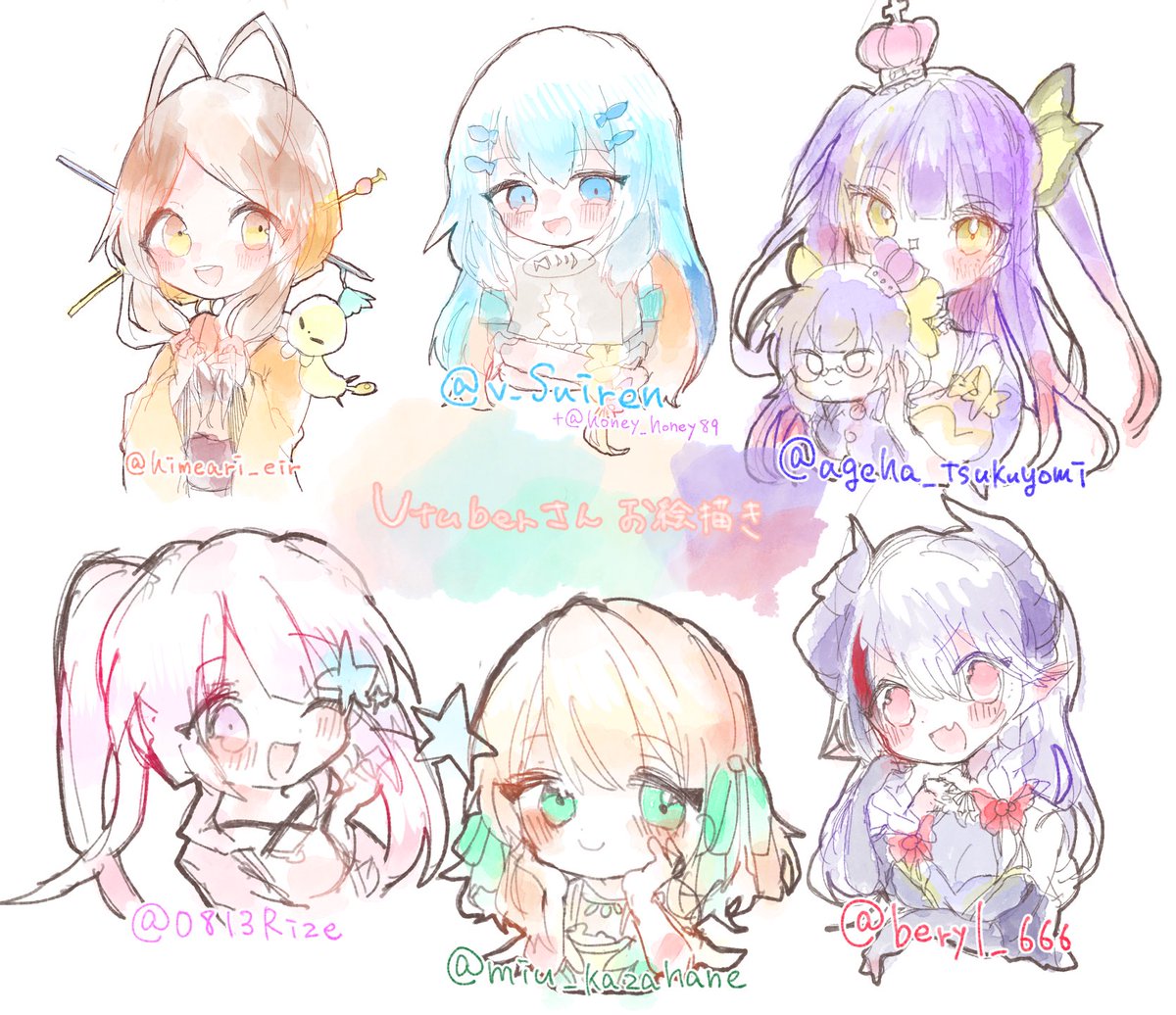 コンニチワ!甜瓜あんです!🍈🍈 今日Vtuberさんたちを描かせていただく夢を見たので、 せっかくだからお世話になってる方&気になる方を描かせていただきました!(第2弾) 描かせていただいた方のアカウントはリプライツリーに載せます~🤟🤟 #スイちゃんあーと #月詠の蝶 #風羽ミウ #りぜこれ