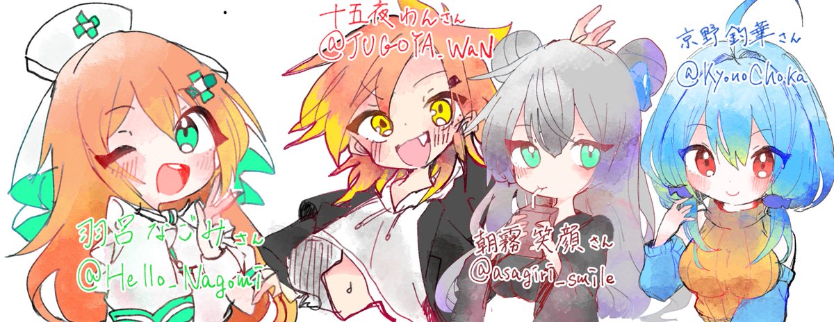 フォロワーのVtuberさんたちを描こう第三弾 描かせていただいた方々のtwitterはリプライに貼ります #となりのわん #朝霧絵顔 #なごみ画廊