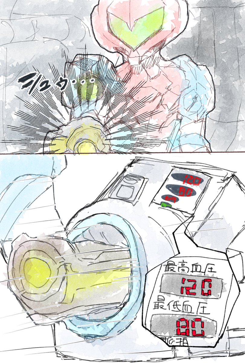57 122 通信とか回復する時の腕さす瞬間がスタイリッシュ血圧測定に見えるので描きました #MetroidDread #メトロイドドレッド 21/10/11 17:26