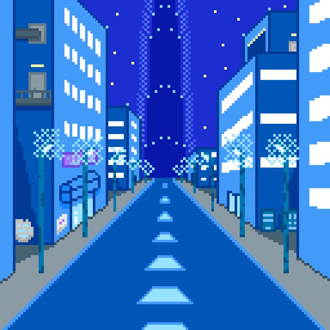 進捗🌃🟦 すごく良くなってきた! #ドット絵 #pixelart