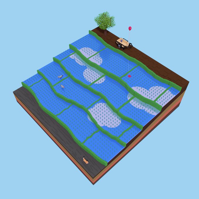 久々の新作です!ボクセルアートで「田んぼ」 Paddy field by voxel art. It's a new work after a long absence. #ボクセルアート #ボクセル #voxelart #magicavoxel #nftart #cryptoart #NFT #36FUJI