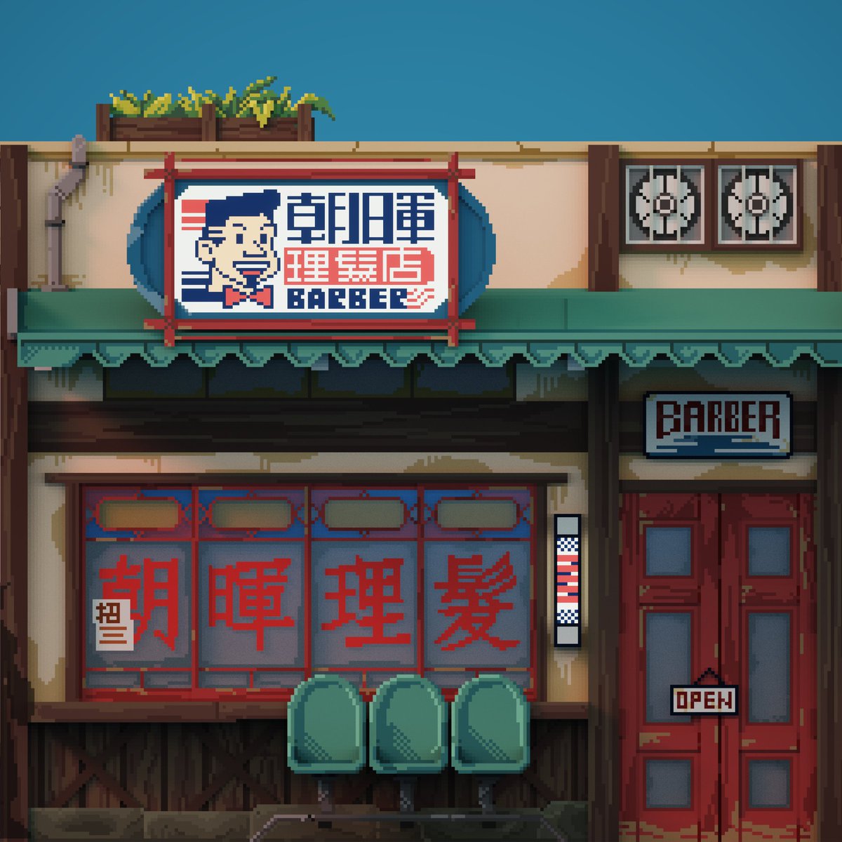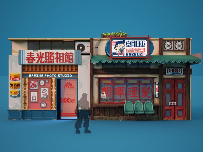 Old-style street update! Barber shop opened! #magicavoxel #voxelart #pixelart #voxel #illustration #canton