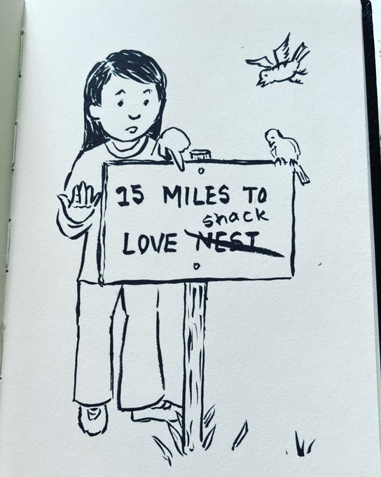 Day 13 of #scbwiartober - #nest - I went the silly route. Anyone else catch the #earworm? #scbwi #illustrators #kidlitillustration #inkdrawing