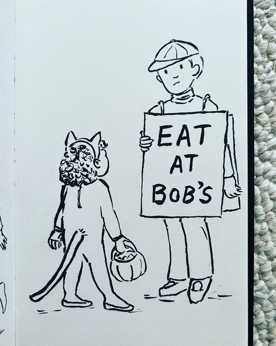 “What are YOU supposed to be dressed as?” asked the little girl. 😆 Day 10 of #scbwiartober is #costume Talking to my dad on the phone for a half hour this afternoon allowed me to do the sketch early. #scbwi #illustrators #kidlitillustration #inkdrawing