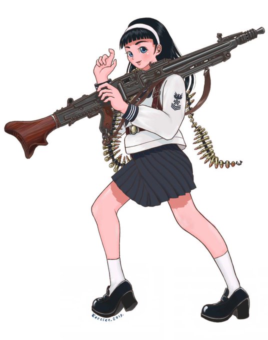 MG42娘。過去絵ですが毎分1,200〜1,500発、後期型の一部は毎分1,800発お見舞いします。😋💦