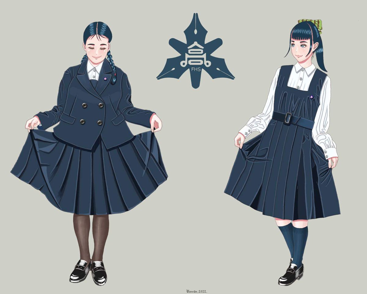 岩手県立盛岡第四高校の夏服(左)。爽やかなデザインだと思います。過去絵ですがどうぞ。😋💦