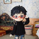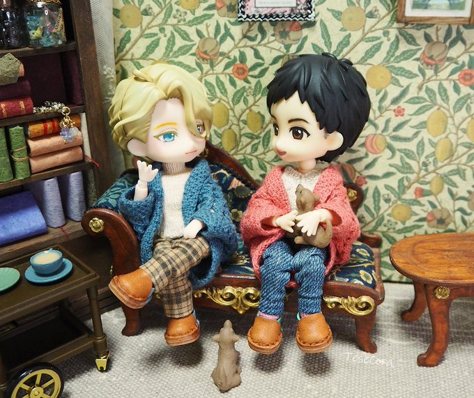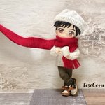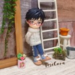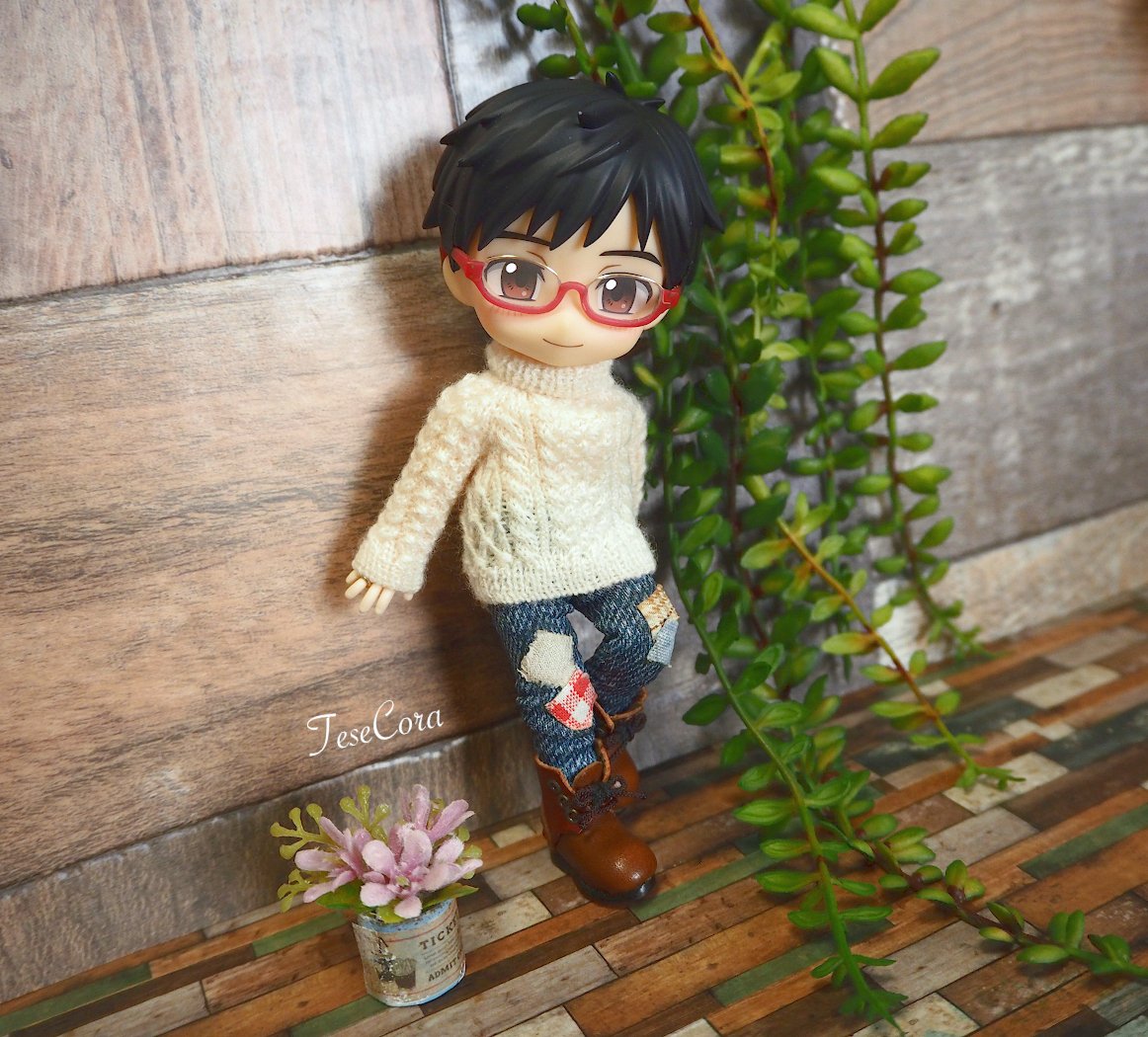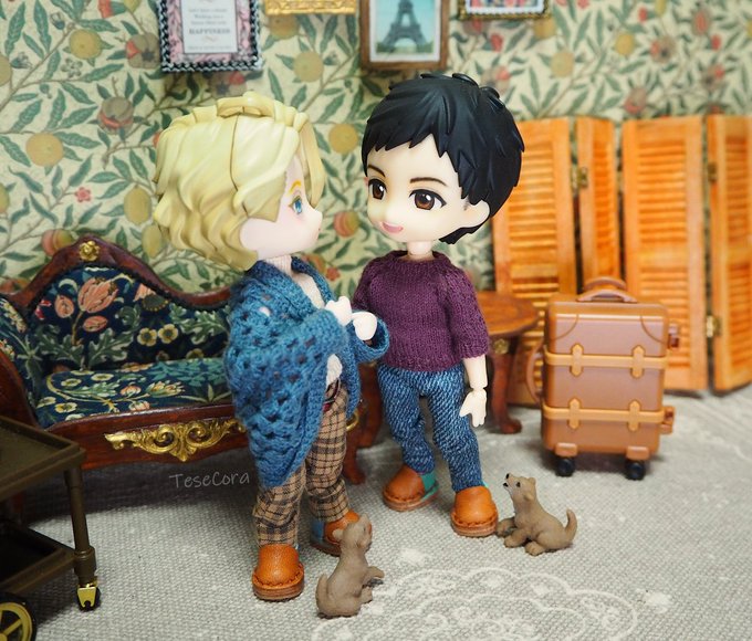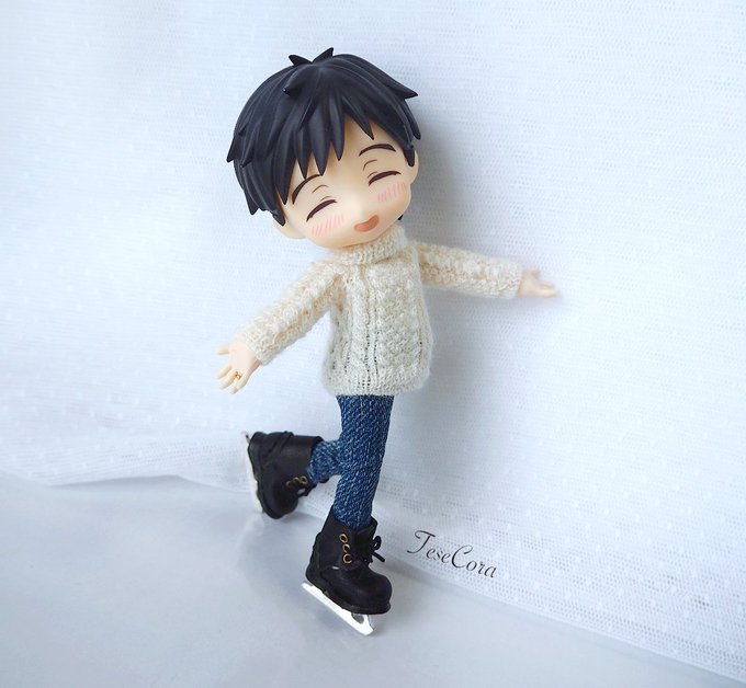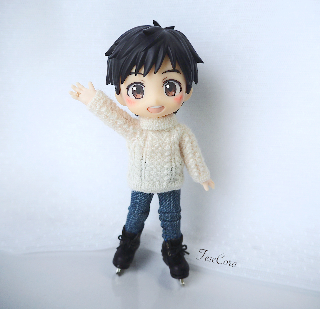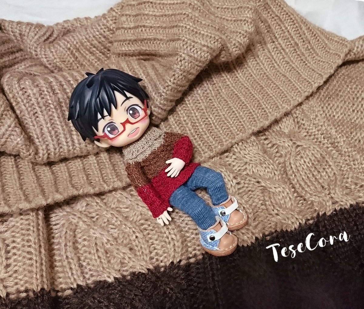 セーター、マフラー、ニット帽 All手編みでございます🐑 マフラーが地味に時間かかった! 1枚目はパロってますが それ以降は私の脳内補正でございます✨ ロングマフラーってなったら… まぁ、こうなるよね…(*´ෆ⁾⁾⁾)(❐ᴗ❐`*) #オビツろいど勇利 #オビツろいどヴィクトル #手編み