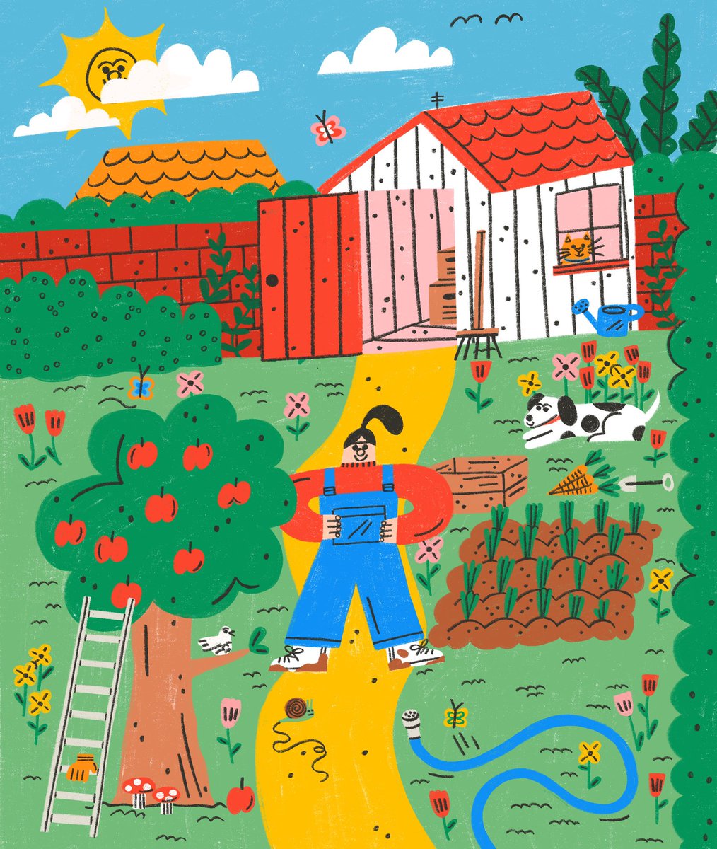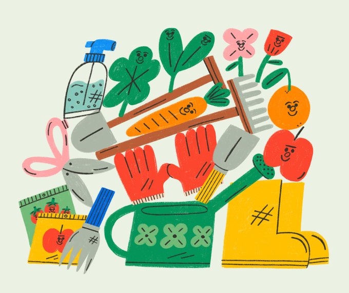 Some spot illustrations for @Glee_Birmingham ! “A Greener Future for Garden Retail.” A document about sustainability in the gardening industry 🪴🥕🍎 🥬🌿 #illustration