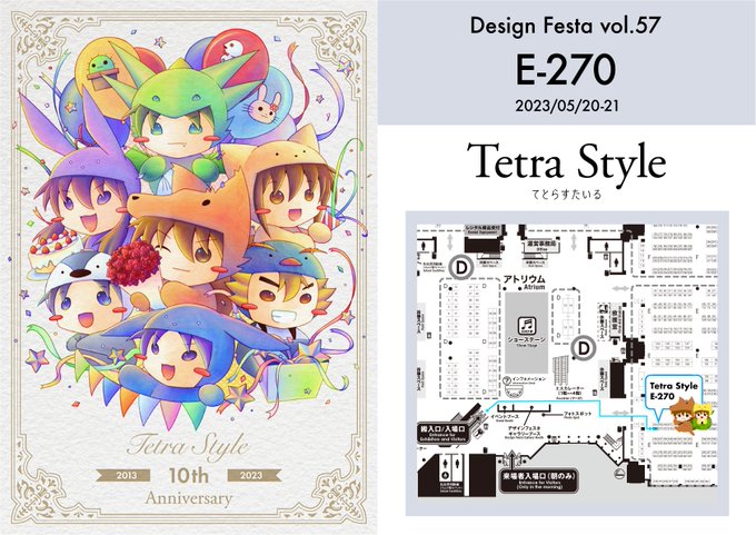 Tetra Styleは今年で10周年! 当日はお祝いメッセージ募集の企画も♪ メッセージを書いてくださった方にはイラストのチェキ風カードをプレゼントします✨ #デザフェス57 🌟Tetra Style 🌟ブースNo.E-270 🌟5/20-21(両日) #GW創作クラスタフォロー祭 #デザフェスお品書き @designfesta