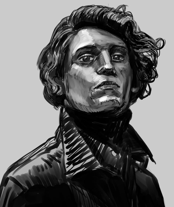 男性 昨日に引き続きガシガシ描き 明暗をもう少し複雑に表現しようと思ったのですが、なんだかくどい感じの仕上がりになりました #イラスト