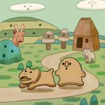 散歩するハニワ ハニワの住む世界をイメージして描きました 家の近くにいる白いハニワはウサギです #イラスト