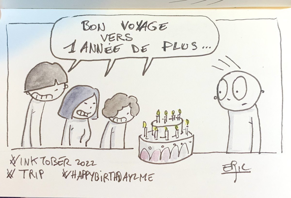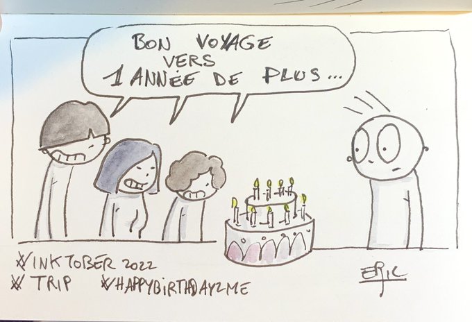 Hello Twitter 🤘 🎉🎂🎁😱👴🏻💀🤣🤣🤣 #happybirthdaytome #inktober #inktober2022 #illustration #inkdrawing #watercolor #trip